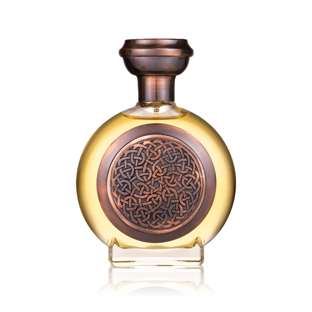 تأتي زجاجة العطر بتصميم فريد يحاكي التحف الفنية القديمة. الشكل الدائري المطلي بالذهب يضفي لمسة ملكية، بينما الزخرفة النحاسية المعقدة تروي حكايات من الماضي، وتزيد من قيمة العطر كتحفة فنية نادرة.