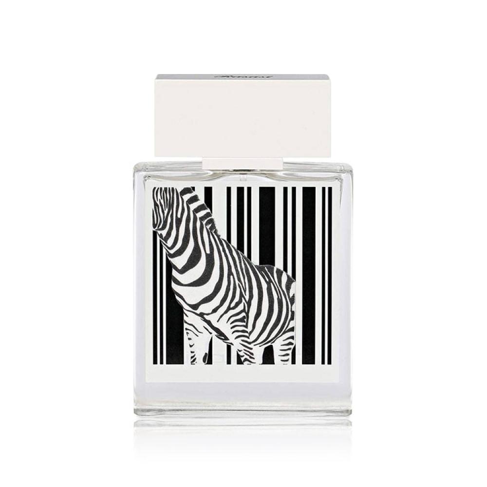 - زجاجة أنيقة بتصميم عصري ولافت للنظر، مزينة بنقشة حمار وحشي ترمز إلى التميز والجرأة.