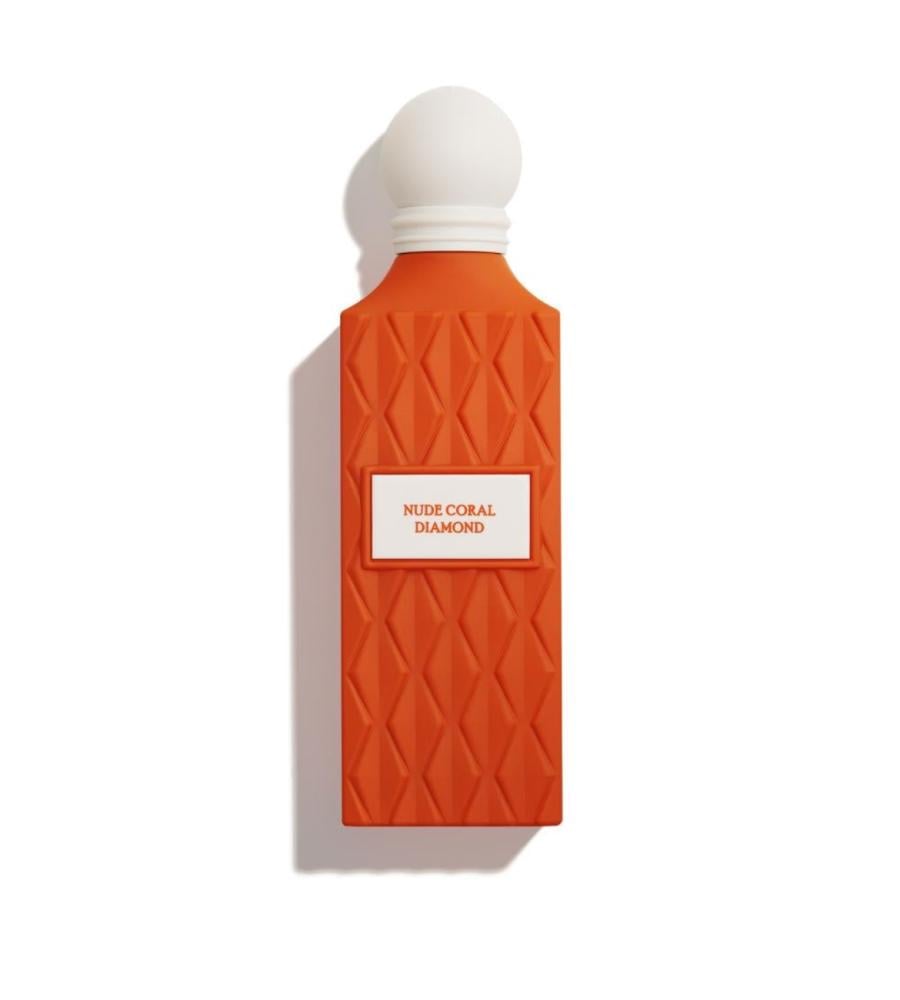 تأتي زجاجة "نود كورال دايموند" بتصميم هندسي فريد يجسد الأناقة والرقي. اللون المرجاني الدافئ يذكر بألوان الغروب الساحرة، بينما يعكس شكل الزجاجة الماسي التلألؤ والجمال. هذه الزجاجة ليست مجرد وعاء للعطر، بل هي قطعة فنية تزين طاولتك وتضفي لمسة من الفخامة على مجموعتك.